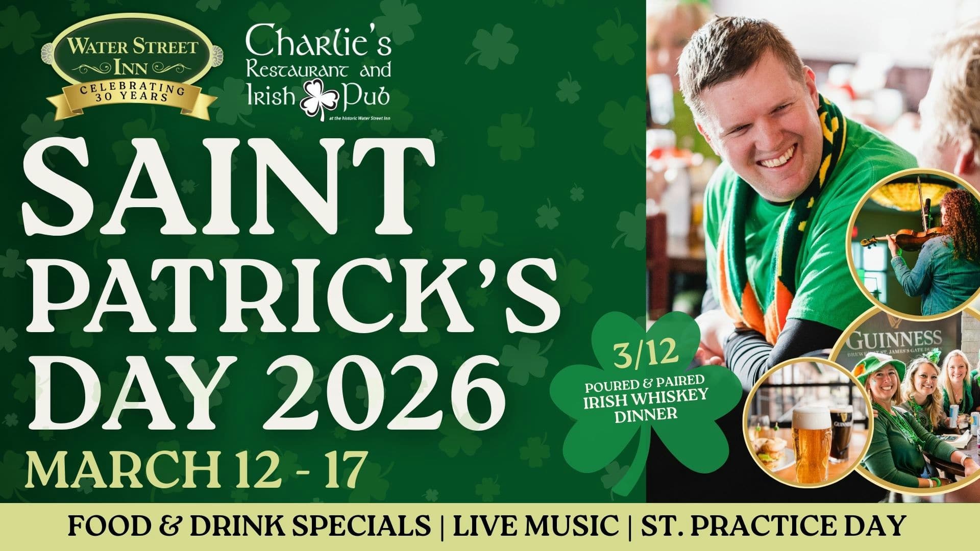 • Saint Patrick’s Day 2026 at Charlie’s Restaurant & Irish Pub | Water Street Inn