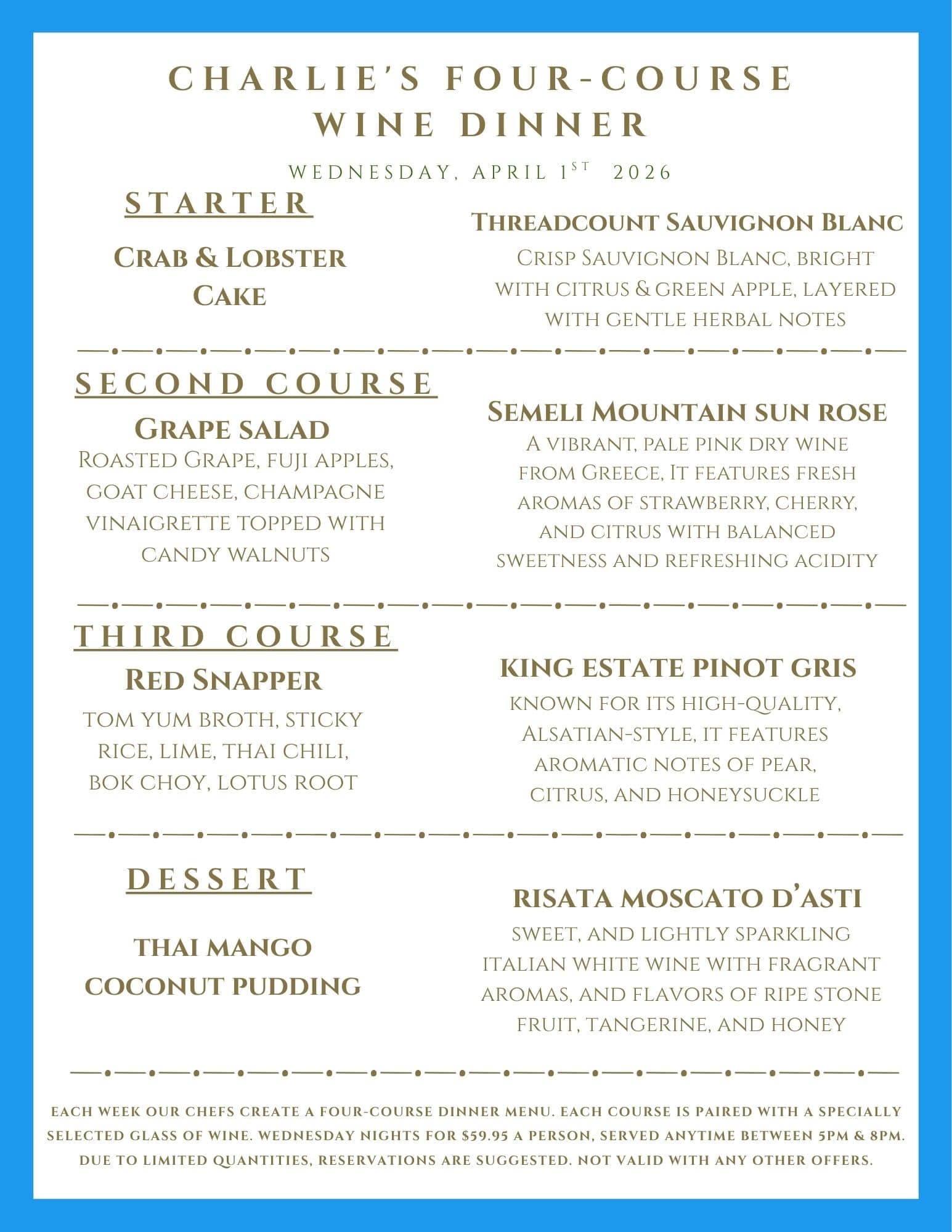 Join us at Charlie’s Restaurant & Irish Pub inside the Water Street Inn for delicious Friday Fish Fry Specials you won’t want to miss! ALL YOU CAN EAT COD: Crispy battered cod served with fries, tartar sauce, coleslaw & lemon wedges – because one piece is never enough! $20.95/person FISH & CHIPS ENTREE: 2 generous […]