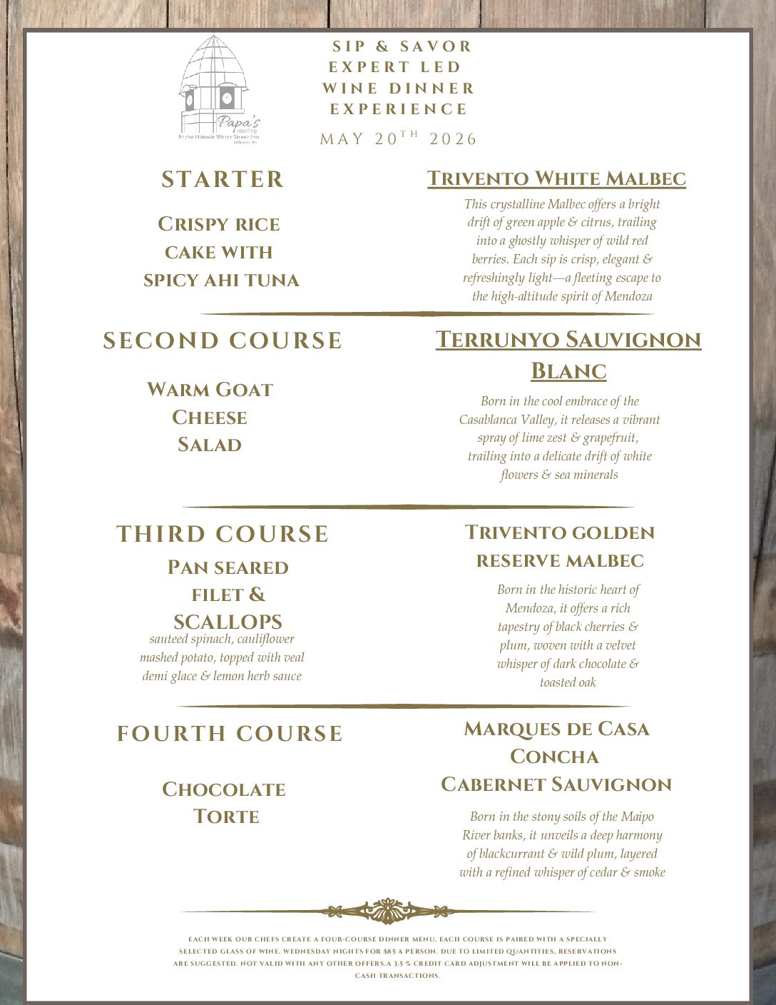 🍷SIP & SAVOR EXPERT-LED WINE DINNER EXPERIENCE🍷 Wednesday, May 20, 2026 | 6PM Join us for an unforgettable evening atop Papa’s Rooftop at our Sip & Savor Expert-Led Wine Dinner […]