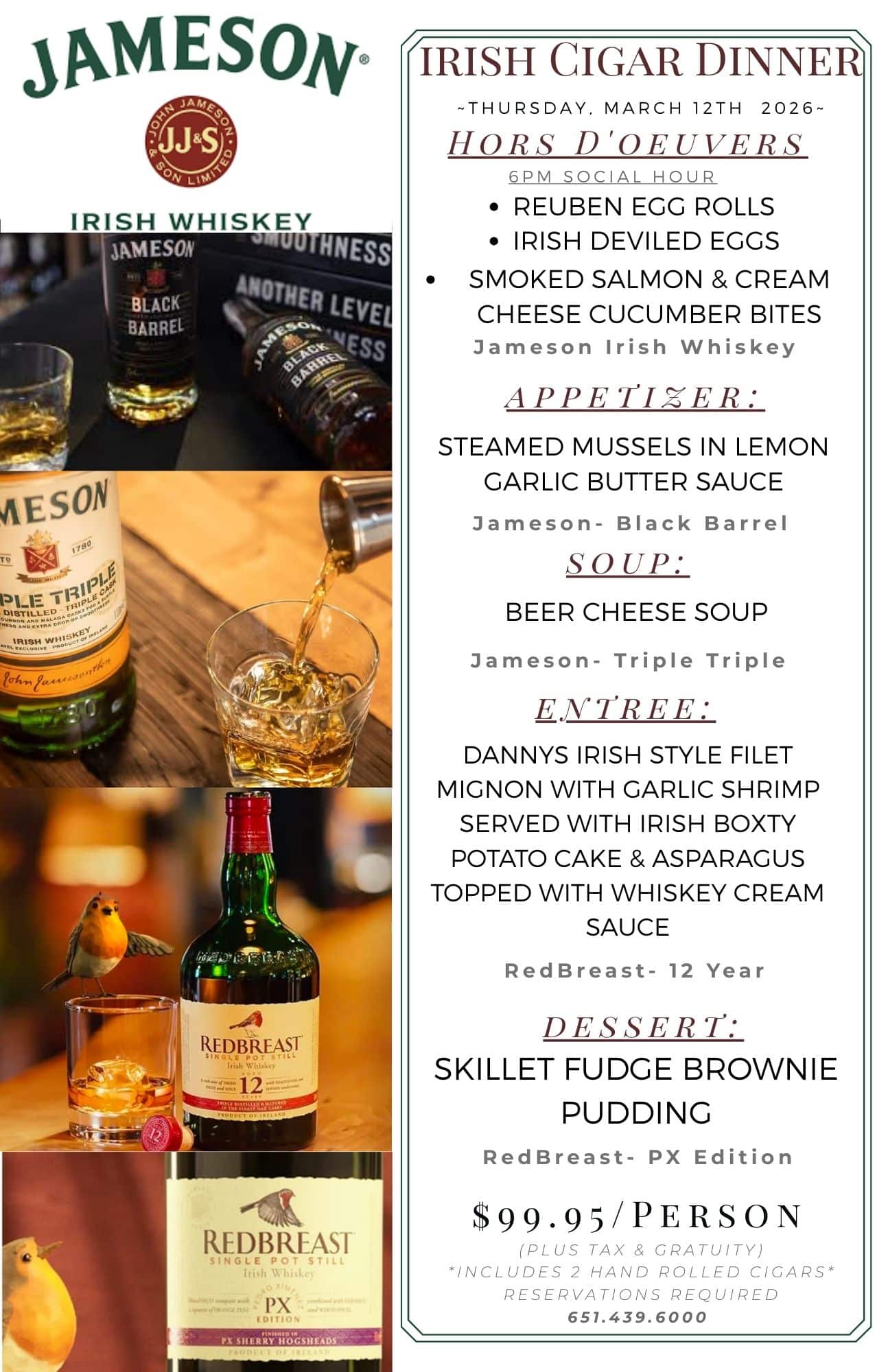 Important: When booking, please mention “IRISH WHISKEY DINNER” in the request section to confirm your reservation.
