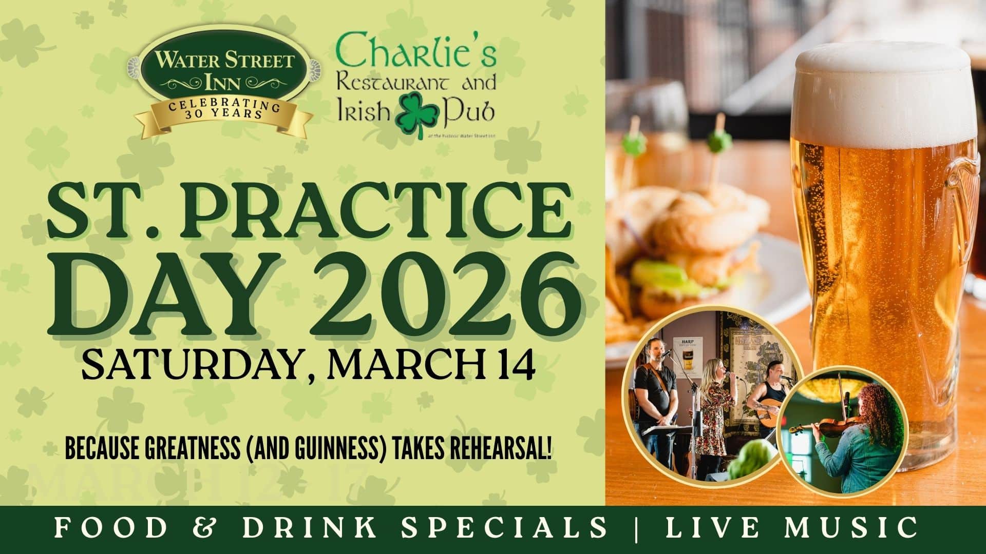 St. PRACTICE Day at Water Street Inn & Charlie’s Restaurant & Irish Pub
